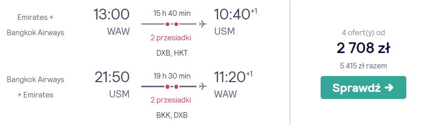Linia lotnicza: Emirates oraz Bangkok Airways