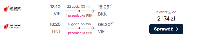 Czeka cię podróż z Air China z przesiadką w Pekinie. W cenie możesz zabrać bagaż rejestrowany (nadawany do luku).