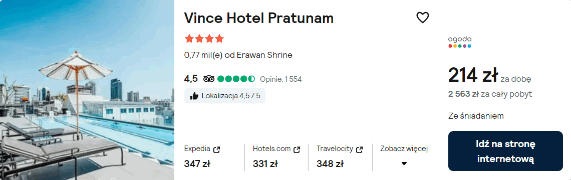 W stolicy Tajlandii postaw na pobyt ze śniadaniami w 4* hotelu Vince Pratunam, który znajduje się w sąsiedztwie stacji BTS Skytrain. Na terenie całego obiektu będziesz miał dostęp do sieci WiFi.