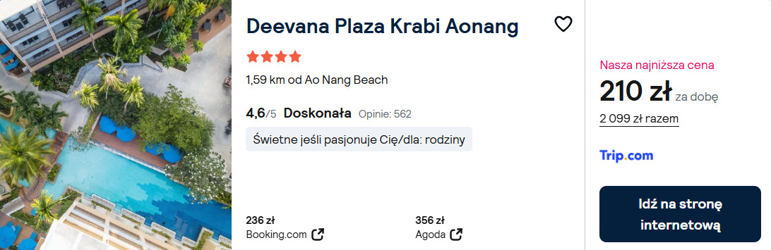 4* hotel Deevana Plaza Krabi Aonang to komfortowy obiekt położony 5 minut spacerem od plaży Ao Nang.