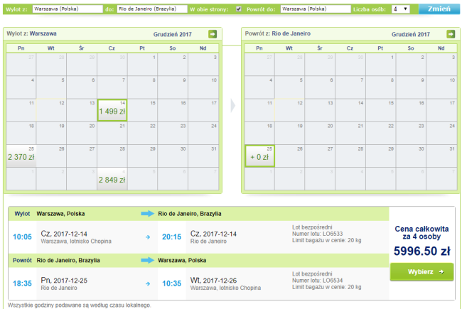 Do Brazylii lecicie z dwiema sztukami bagażu: jedną podręcznego i drugą rejestrowanego (nadawany do luku bagażowego) o wadze do 20 kg. Bezpośrednia podróż w obie strony odbywa się na pokładzie Boeinga 787 Dreamliner.