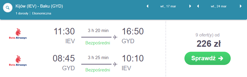 First minute: tanie loty do Azerbejdżanu (Baku) z Kijowa za 226 PLN