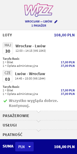 Najtańsze przeloty dostępne są dla osób posiadających Wizz Discount Club i lecących tylko z małym bagażem podręcznym o maksymalnych wymiarach 42 x 32 x 25 cm.