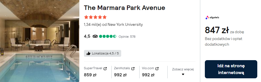 Możesz pozwolić sobie na większy wydatek? Zarezerwuj pobyt w bardzo dobrze ocenianym 4* hotelu Millennium Downtown New York.