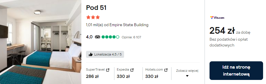 Szukasz niedrogiej opcji zakwaterowania? Wybierz noclegi w hotelu Pod 51, który znajduje się w odległości niecałych 2 km od Empire State Building.