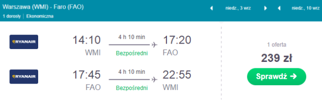 Zarezerwuj bilety z Warszawy do Faro: