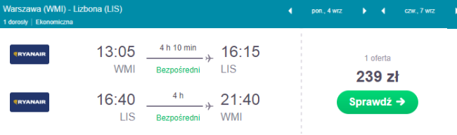 Zarezerwuj bilety z Warszawy do Lizbony: