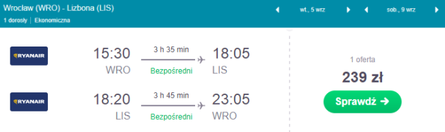 Zarezerwuj bilety z Wrocławia do Lizbony: