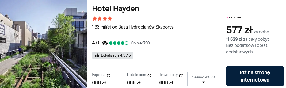 W USA zatrzymaj się w bardzo dobrze ocenianym 4* hotelu Hayden. W obiekcie znajdziesz siłownię, kawiarnię, bar oraz restaurację. Pokoje wyposażone są w bezpłatne WiFi.