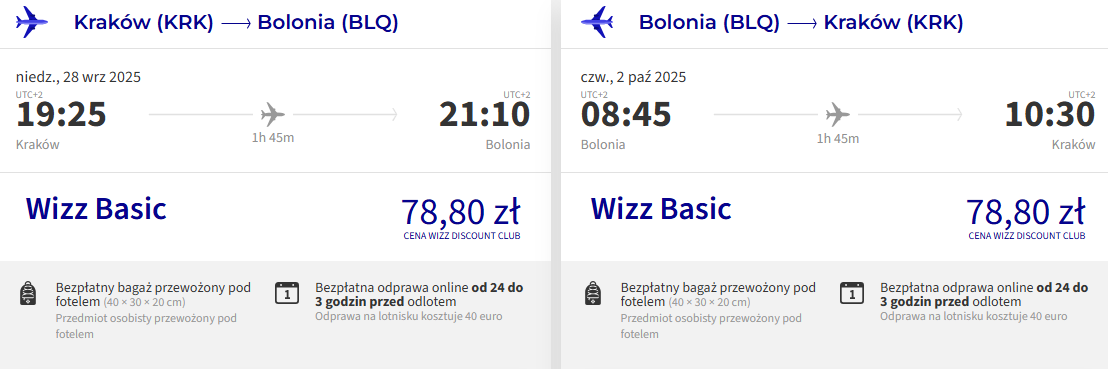 Do Włoch polecisz bezpośrednio z Krakowa z Wizz Air. Bilety w najniższej cenie zarezerwują członkowie Wizz Discount Club, pozostałe osoby zapłacą nieco więcej. W cenie możesz zabrać bagaż podręczny.