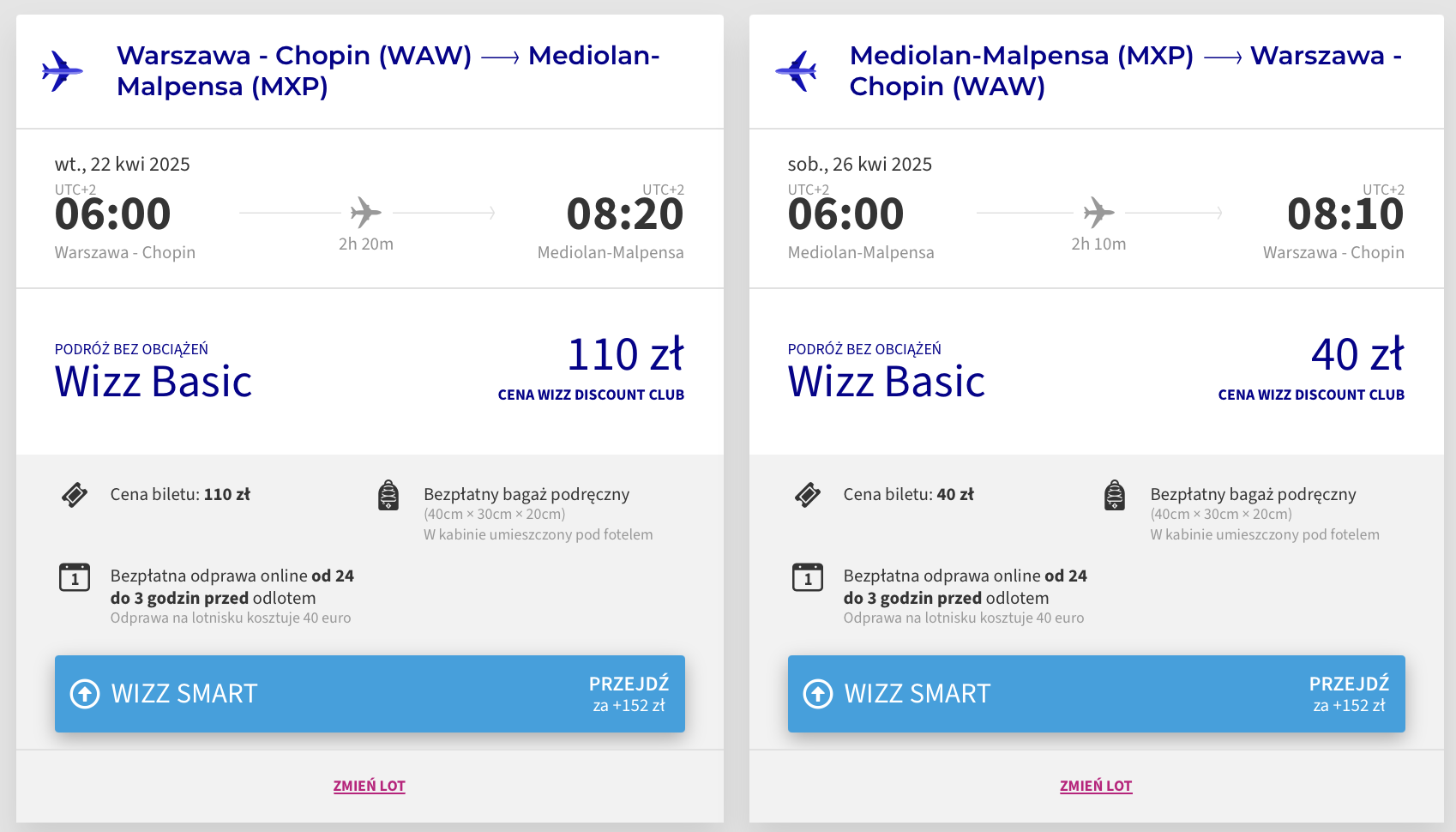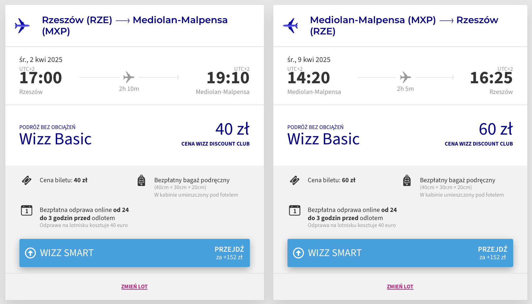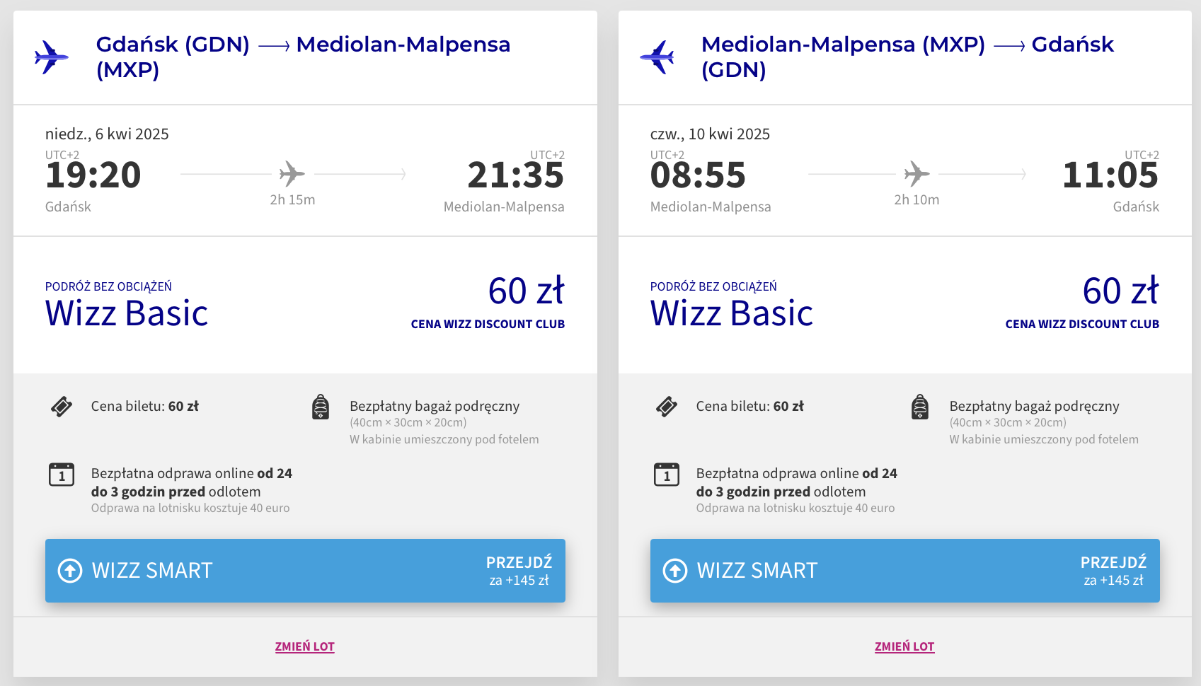 Do Włoch wybierzesz się z lotniska w Krakowie, Rzeszowie, Gdańsku i Warszawie, w marcu oraz kwietniu. W obie strony polecisz bezpośrednio linią Wizz Air z bagażem podręcznym.