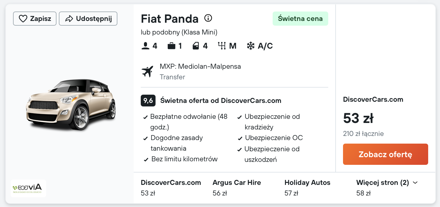 Jeśli chcesz także odwiedzić okoliczne jeziora, wypożycz samochód już na lotnisku w Mediolanie.