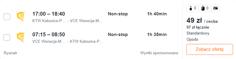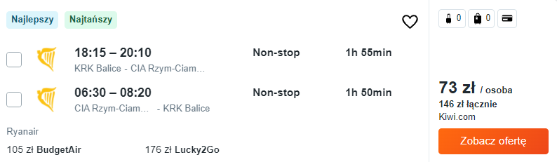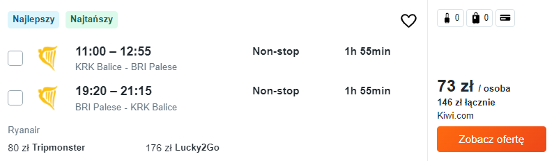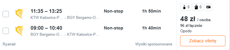 Najtańsze bilety dostępne są już za 48 PLN – radzę jednak nie zwlekać z rezerwacjami, bo takie ceny mogą nie utrzymać się długo. 😉