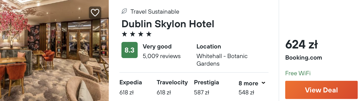 Natomiast w Dublinie postawcie na pobyt w 4* hotelu Skylon. Obiekt jest rewelacyjnie oceniany przez dotychczasowych gości.
