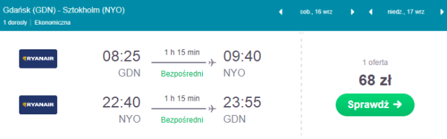 Tanie loty na weekend do Sztokholmu (Skavsta) z Gdańska za 68 PLN