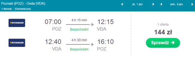 Dobra cena za przeloty z Gdańska oraz Poznania do Izraela. W podróż nad Morze Czerwone wybierzecie się za 144 PLN. Ejlat może być waszym miejscem docelowym, gdzie wypoczniecie na jednej z wielu plaż i skorzystacie z uroków Morza Czerwonego. To doskonałe miejsce na zwiedzanie podwodnego świata. Miasto może być także miejscem przesiadkowym w podróży do Egiptu, gdzie za mniejsze pieniądze wypoczniecie w jednym z ekskluzywnych hoteli, lub Jordanii, gdzie będziecie mieć możliwość zwiedzenia takich miejsc jak: Wadi Rum czy Petra.