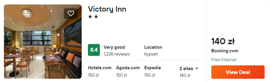 W Atenach proponuję ci nocleg w hotelu Vicory Inn. Każdy pokój wyposażony jest w klimatyzację z funkcją ogrzewania, telewizor LCD, czajnik elektryczny oraz lodówkę. W łazience jest prysznic oraz suszarka do włosów. Na terenie całego obiektu będziesz mieć zapewniony dostęp do sieci WiFi.