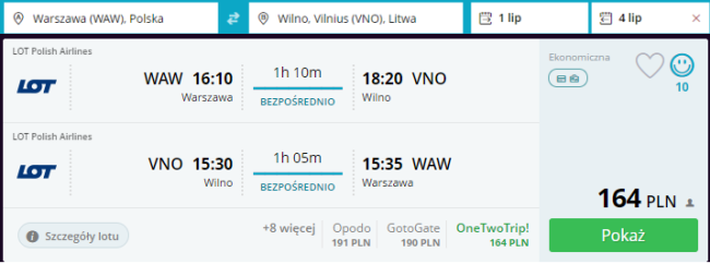 Z trwającej własnie promocji PLL LOT wyszukałem dla Was najciekawsze połączenia w dobrych cenach. W bezpośrednie podróże z Warszawy wybierzecie się już za 164 PLN. Sprawdźcie dostępne terminy w przejrzystych kalendarzach.