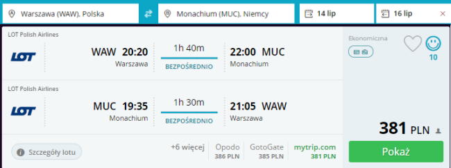 Poniższe propozycje to bezpośrednie loty z Warszawy na pokładzie samolotów PLL LOT. Rezerwacji dokonywać możecie do 23 maja, na podróże odbywające się od 1 lipca do 31 sierpnia.