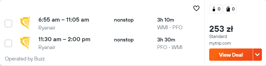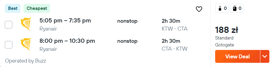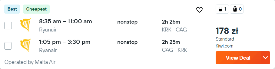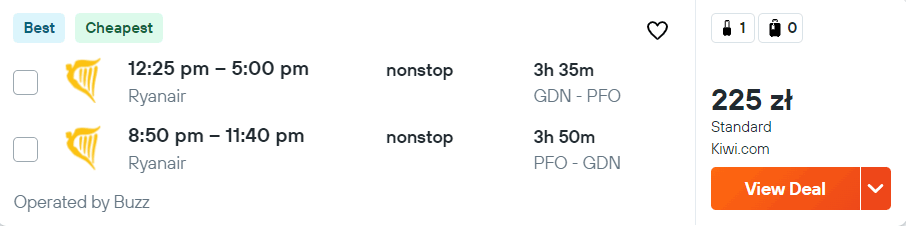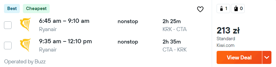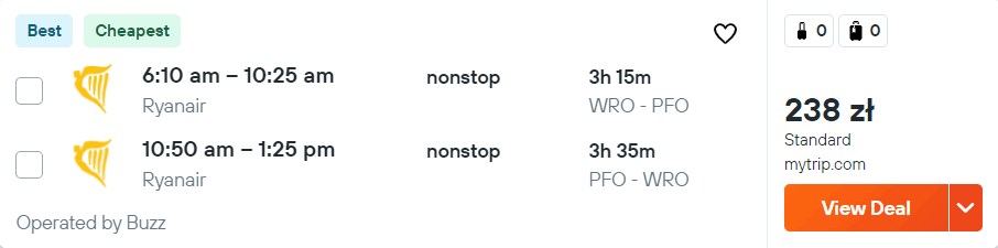 Wszystkie trasy obsługiwane są przez linię lotniczą Ryanair i to na pokładach samolotów tego przewoźnika udasz się na Cypr lub do Włoch. Bez dodatkowych kosztów zabrać ze sobą możesz mały bagaż podręczny.