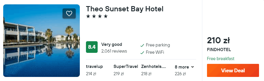 W Pafos rekomenduję ci noclegi w 4* hotelu Theo Sunset Bay. Na jego terenie znajduje się basen bez krawędzi, kryty basen z podgrzewaną wodą, dobrze wyposażone centrum fitness, plac zabaw dla dzieci oraz bezpłatny parking. We wszystkich pomieszczeniach będziecie mieć zapewniony dostęp do sieci WiFi.