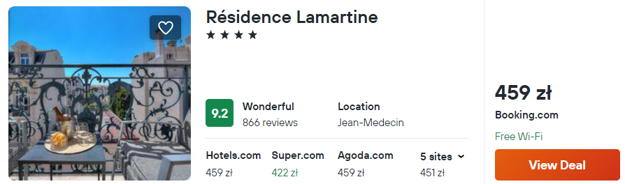 W Nicei postaw na 4* hotel Residence Lamartine. Dotychczasowi goście rewelacyjnie oceniają pobyt w tym miejscu. Będzie to świetna baza wypadowa do zwiedzania Lazurowego Wybrzeża.