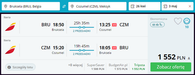 Bruksela – Cozumel – Bruksela za 1552 PLNTerminy od stycznia do maja