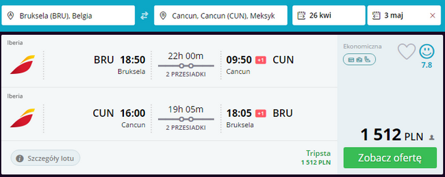 Bruksela – Cancun – Bruksela za 1512 PLNTerminy od stycznia do maja