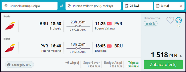 Bruksela – Puerto Vallarta – Bruksela za 1518 PLNTerminy od stycznia do maja