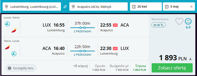 Luksemburg – Acapulco – Luksemburg za 1893 PLNTerminy od sierpnia do stycznia