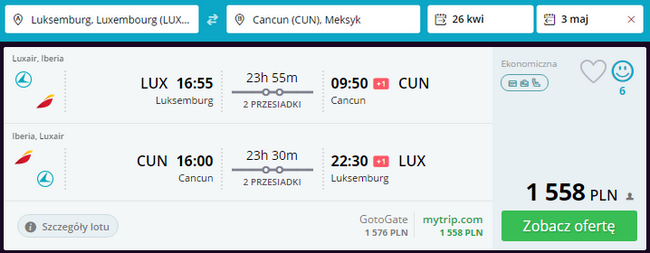Luksemburg – Cancun – Luksemburg za 1558 PLNTerminy od sierpnia do stycznia