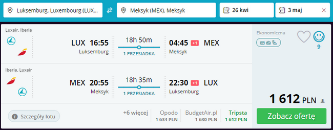 Luksemburg – Mexico City – Luksemburg za 1612 PLNTerminy od sierpnia do stycznia