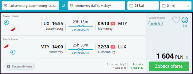 Luksemburg – Monterrey – Luksemburg za 1604 PLNTerminy od sierpnia do stycznia