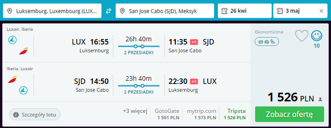 Luksemburg – San Jose Cabo – Luksemburg za 1526 PLNTerminy od sierpnia do stycznia