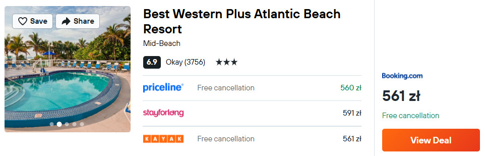 Hotel Best Western Plus Atlantic Beach Resort to prawdziwa perełka – tuż przy plaży Mid‑Beach w Miami, z prywatnym dostępem do wody. Na miejscu basen z barem, centrum fitness, restauracja i bezpłatne Wi‑Fi.