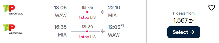 Na Florydę (Miami) polecisz z Warszawy. W obie strony podróżować będziesz linią TAP Air Portugal z wygodnymi przesiadkami w Lizbonie.