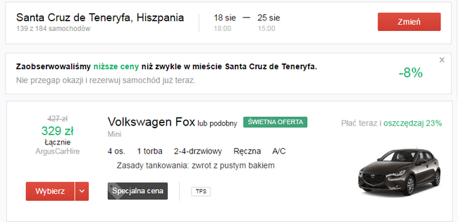 Pomyślcie także o wypożyczeniu samochodu na Kanarach, dzięki temu łatwo i wygodnie dojedziecie do miejsca zakwaterowania, a przy okazji zobaczycie więcej.