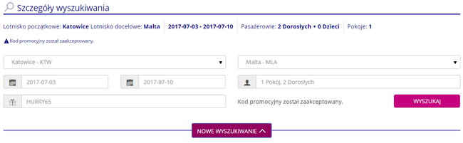W celu skorzystania z którejś z ofert, podczas rezerwacji użyjcie kodu zniżkowego: HURRY65.