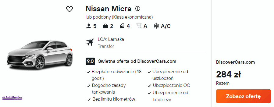 W trakcie pobytu masz zamiar wybrać się w inne rejony Cypru? W takim razie wypożycz samochód zaraz po przylocie. Mając do swojej dyspozycji auto, łatwo i wygodnie dojedziesz m.in. do Nikozji lub Limassol.