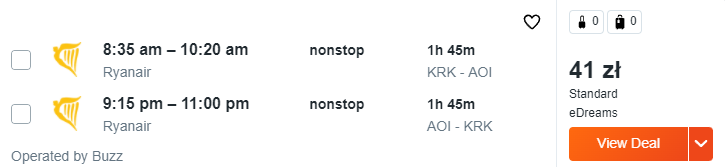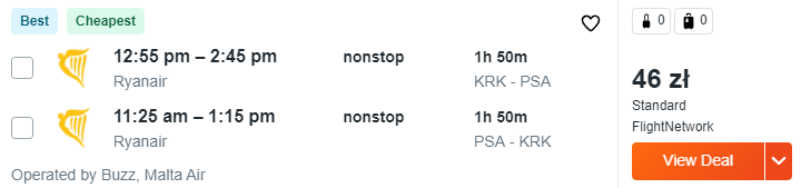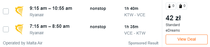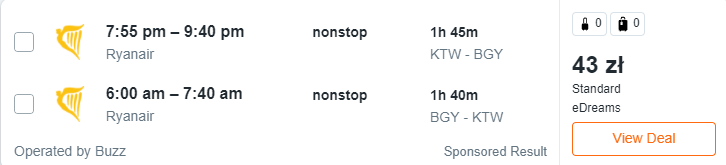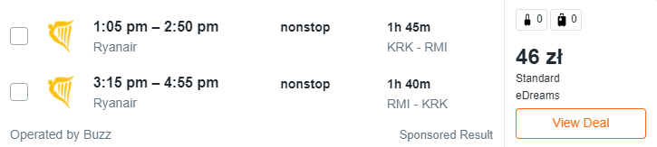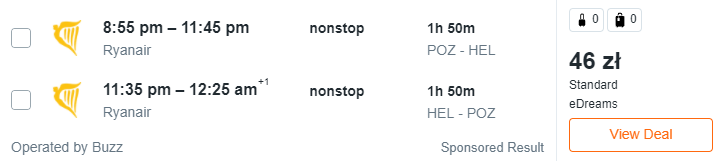 Wszystkie poniższe loty to bezpośrednie podróże na pokładzie samolotów linii lotniczej Ryanair. Możecie polecieć do Włoch, Łotwy, Finlandii lub Austrii. Bilety dostępne są w cenie dużej pizzy – od 41 do 46 PLN. W cenę wliczony jest wyłącznie mały bagaż podręczny. Przeczytajcie nasze wskazówki, jak się spakować, a nie powinno to stanowić problemu.