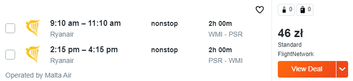 Wyloty z: Krakowa, Warszawy (Modlin), Poznania oraz Katowic