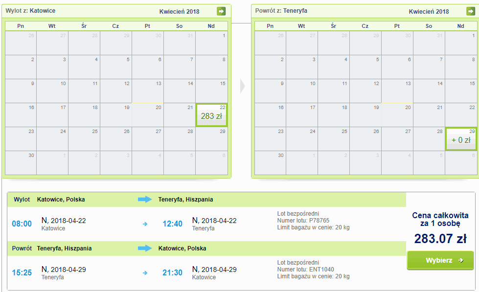 Loty czarterowe na Teneryfę z Katowic za 283 PLN
