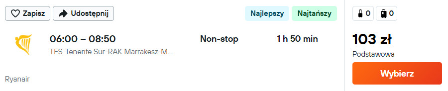 Przygotowany przeze mnie wyjazd składa się z trzech bezpośrednich lotów linią Ryanair na trasach: Berlin-Teneryfa, Teneryfa-Marrakesz oraz Marrakesz-Berlin.