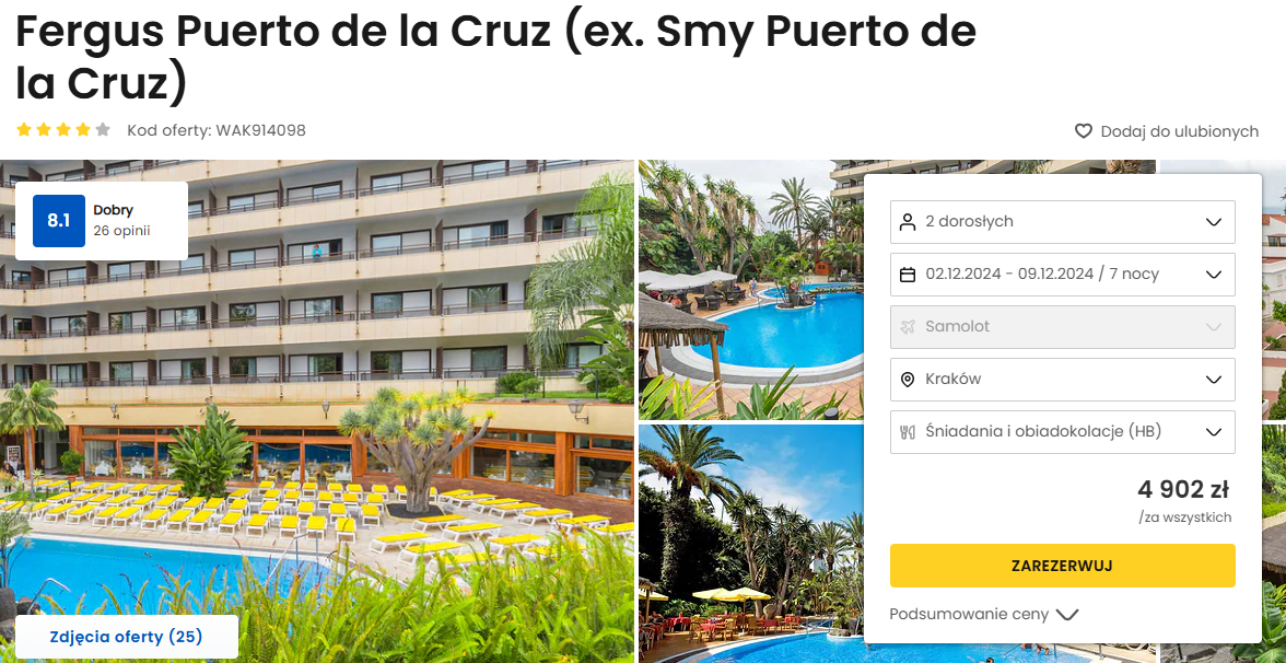 Do Hiszpanii wybierzesz się w terminie 2 – 9 grudnia. Na Teneryfę polecisz bezpośrednio z Krakowa linią Ryanair. W cenie możesz zabrać bagaż podręczny.