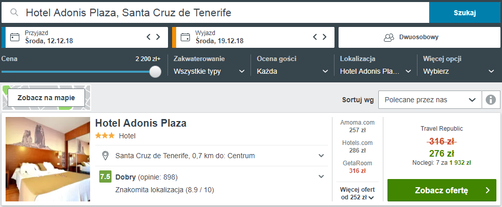Na Teneryfie proponuję zatrzymać się w hotelu Adonis Plaza. Obiekt znajduje się w centrum miasta Santa Cruz de Tenerife, 5 minut spacerem od portu. Pokoje są prosto urządzone i zapewniają bezpłatny przewodowy dostęp do internetu, klimatyzację, telewizor z płaskim ekranem oraz prywatną łazienkę.