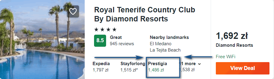 Na wyspie zakwaterowani będziecie w 4* hotelu Royal Tenerife Country Club By Diamond Resorts, który znajduje się na południowym wybrzeżu. Z lotniska w okolice miejsca noclegowego (przystanek Golf del Sur) dojedziecie bezpośrednio autobusem nr 415 lub wypożyczonym samochodem — szczegóły poniżej.