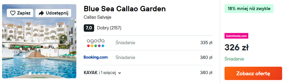 Blue Sea Callao Garden — dobra opcja, jeśli chcesz komfortowego apartamentu blisko plaży. W kompleksie znajdziesz 4 baseny, aneks kuchenny, balkon/ taras, restaurację i bar, a lokalizacja to spokojna miejscowość nad oceanem.