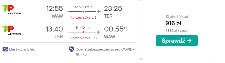 Do Portugalii wybierzecie się w gorącym terminie obejmującym tegoroczną majówkę: 30 kwietnia – 7 maja. Czeka was podróż z Warszawy na pokładzie samolotów linii lotniczej TAP Air Portugal z bezpiecznymi, gwarantowanymi przez przewoźnika przesiadkami w Lizbonie.