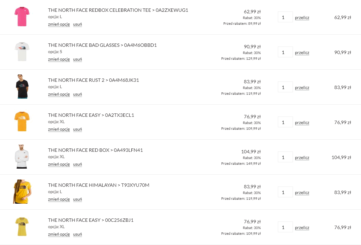 Spójrzcie, jak wygląda przykładowe zamówienie po rabacie.