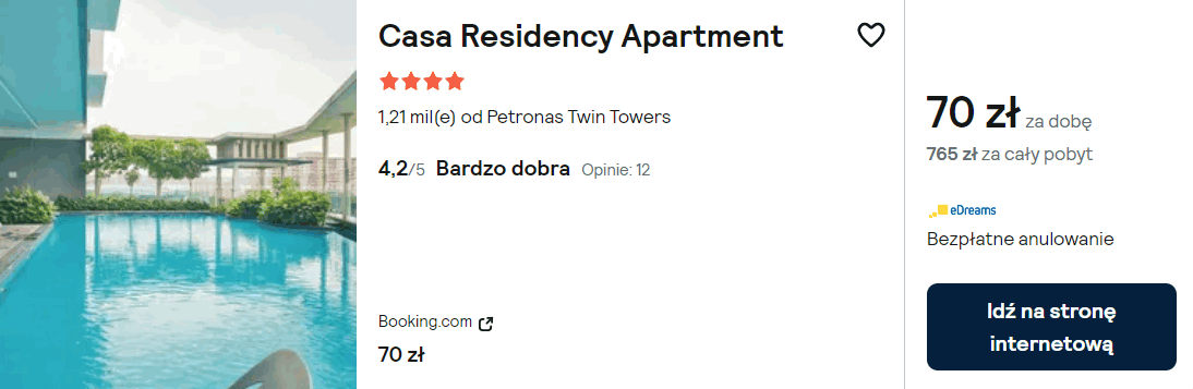 Z pobytu w stolicy Malezji planujesz „wycisnąć” jak najwięcej? W takim razie na miejsce zakwaterowania rozważ kompleks apartamentów, z odkrytym basenem na dachu. Każde studio składa się z aneksu kuchennego, miejsca do relaksu i spania oraz łazienki.